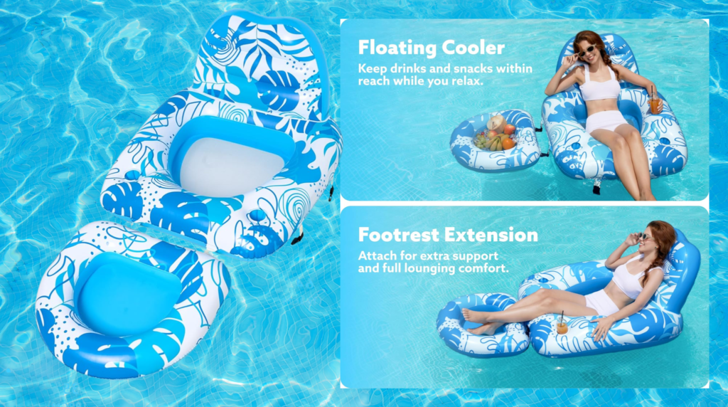 Look for floats with mesh seating that sits you in the water rather than on top of it, built-in backrests, and frames that hold their shape without overinflating. Something like this one – click here.